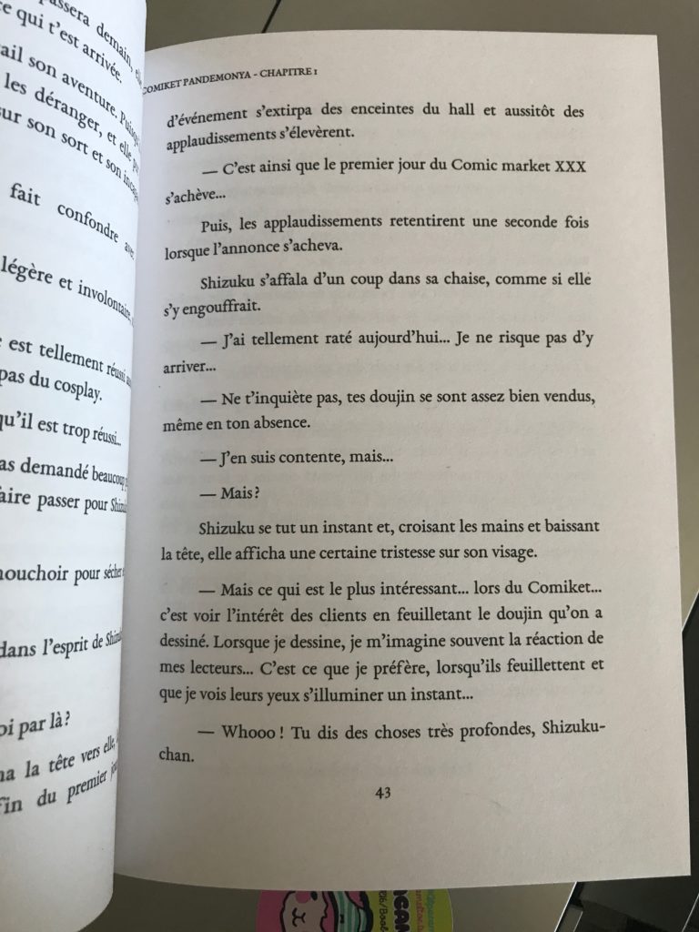 On a même fait différents essais de transparence pour la mascotte de Karaoke Mugen, Nanami ! (dessinée par Sedeto bien sûr, c’est l’héroïne de mon roman, Eternity !)