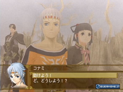 Le bon retour aux sources, c’est bien évidemment les combats à 6, cette fois avec plusieurs formations possibles qui donneront divers bonus, mais aussi une vue du jeu de haut, comme dans le 1 et le 2. Forcément, comme c’est en 3D, on a une vue un peu de côté, mais ça reste néanmoins très agréable à piloter, à dix mille lieues des déplacements lourds à la 3ème personne de Suikoden 4, et ne parlons même pas des déplacements en mer de ce dernier, une véritable horreur…